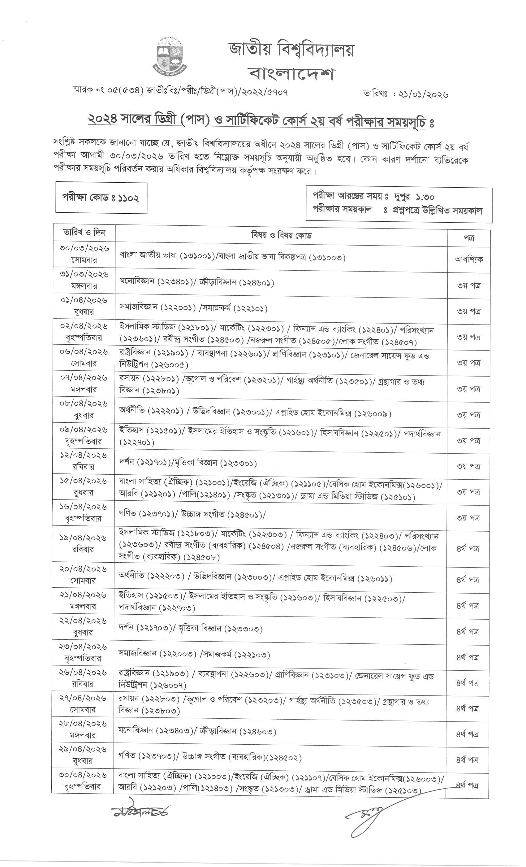 NU Degree 2nd Year Exam Routine 2026 PDF 1