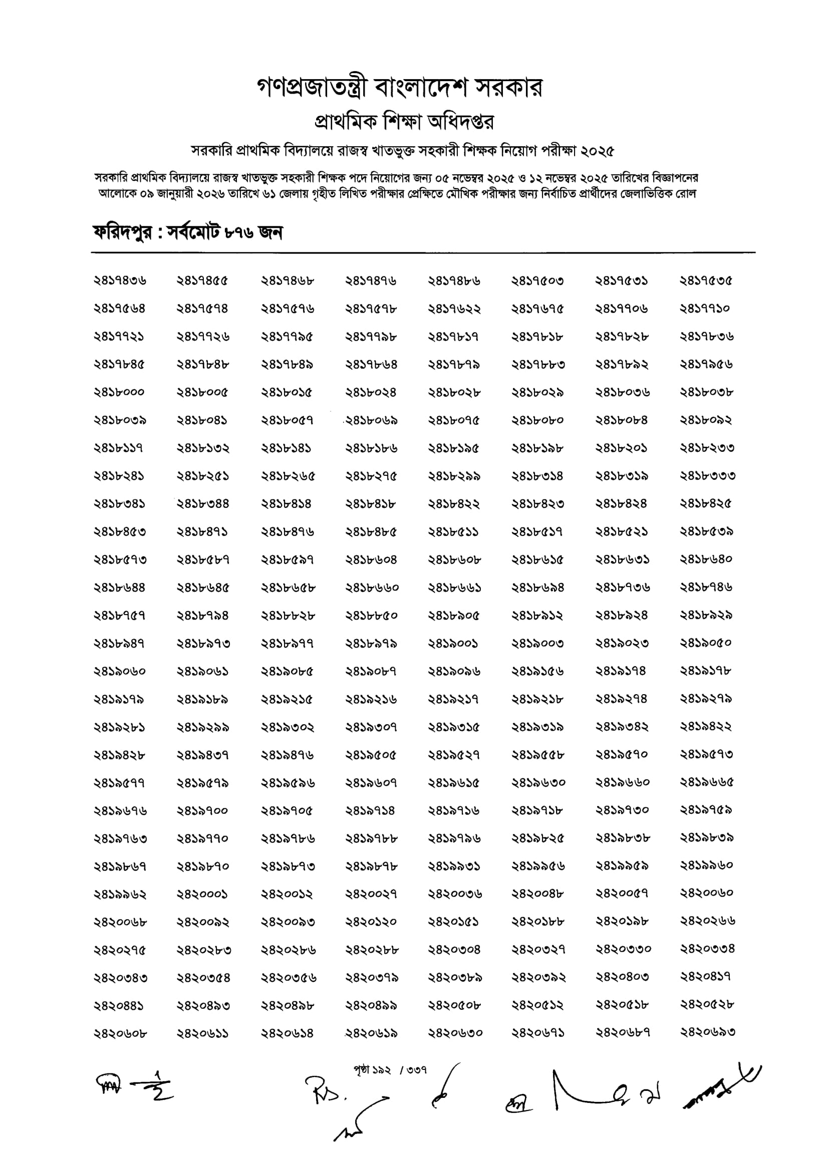 Primary MCQ Exam Result 2026 PDF 194