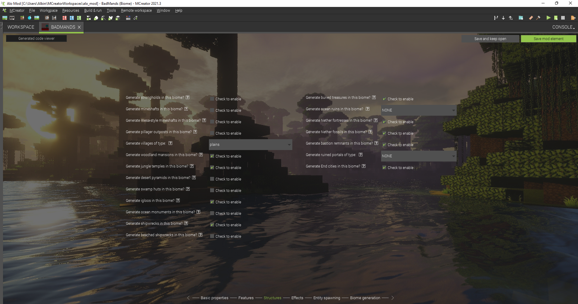 Alo Mod [C__Users_Albin_MCreatorWorkspaces_alo_mod] - BadMands (Biome) - MCreator 2021.3 2022-02-19