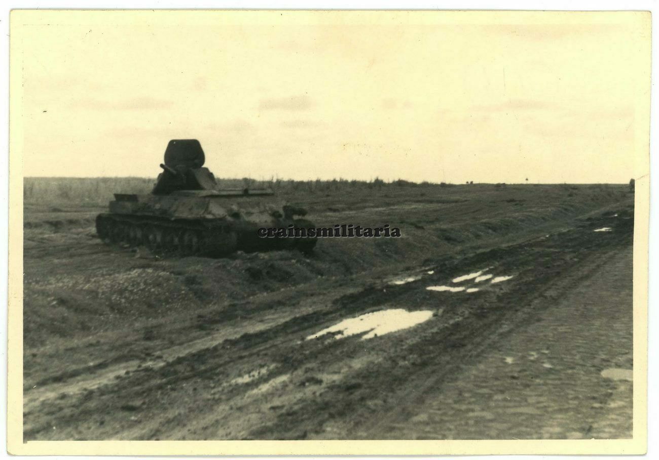 Orig. Foto zerstörte russische Panzer T-34 Tank Wrack in Russland 1941