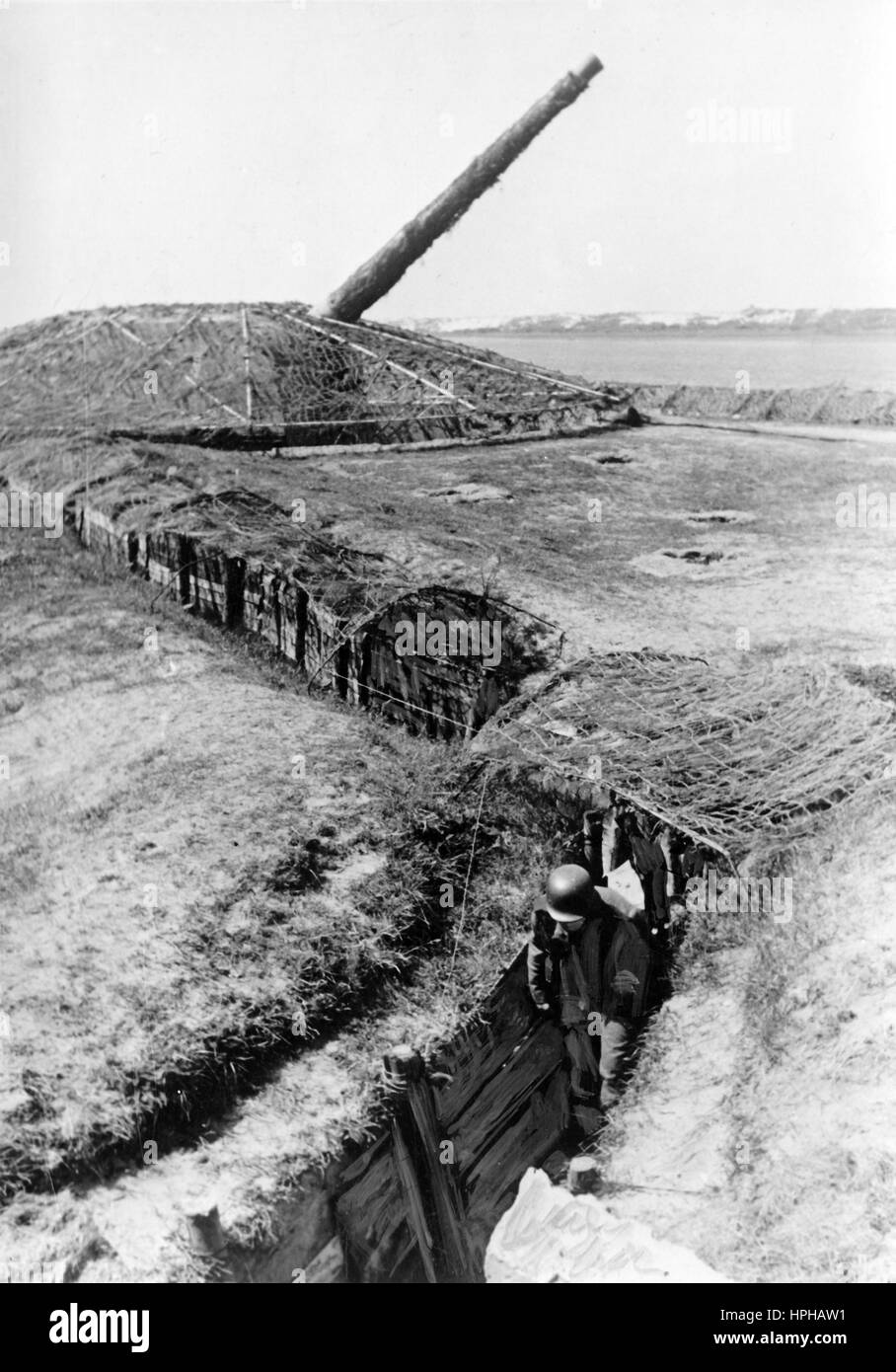 das bild der nazi propaganda zeigt einen deutschen wehrmachtssoldaten in einem kommunikationsgraben