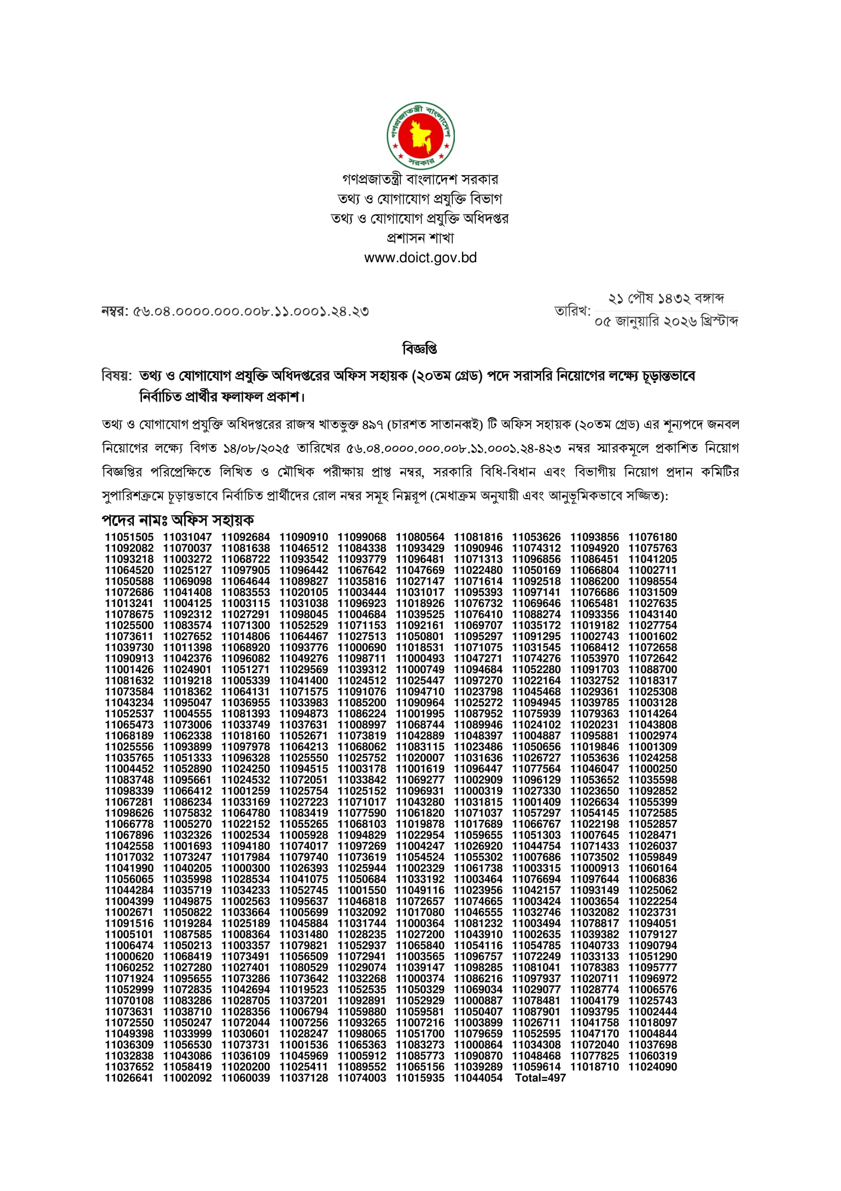 DOICT Office Sohayok Final Result 2026 PDF 1