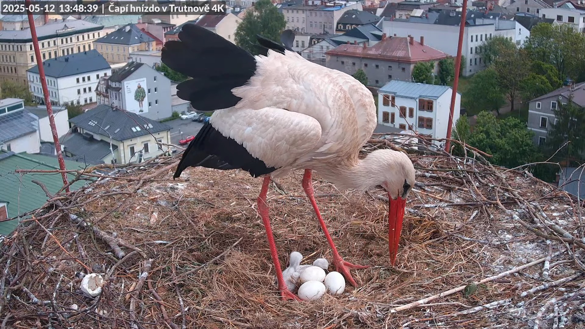 Tiešraide no stārķa ligzdas uz alus darītavas skursteņa Trutnovā 11-55-19 screenshot
