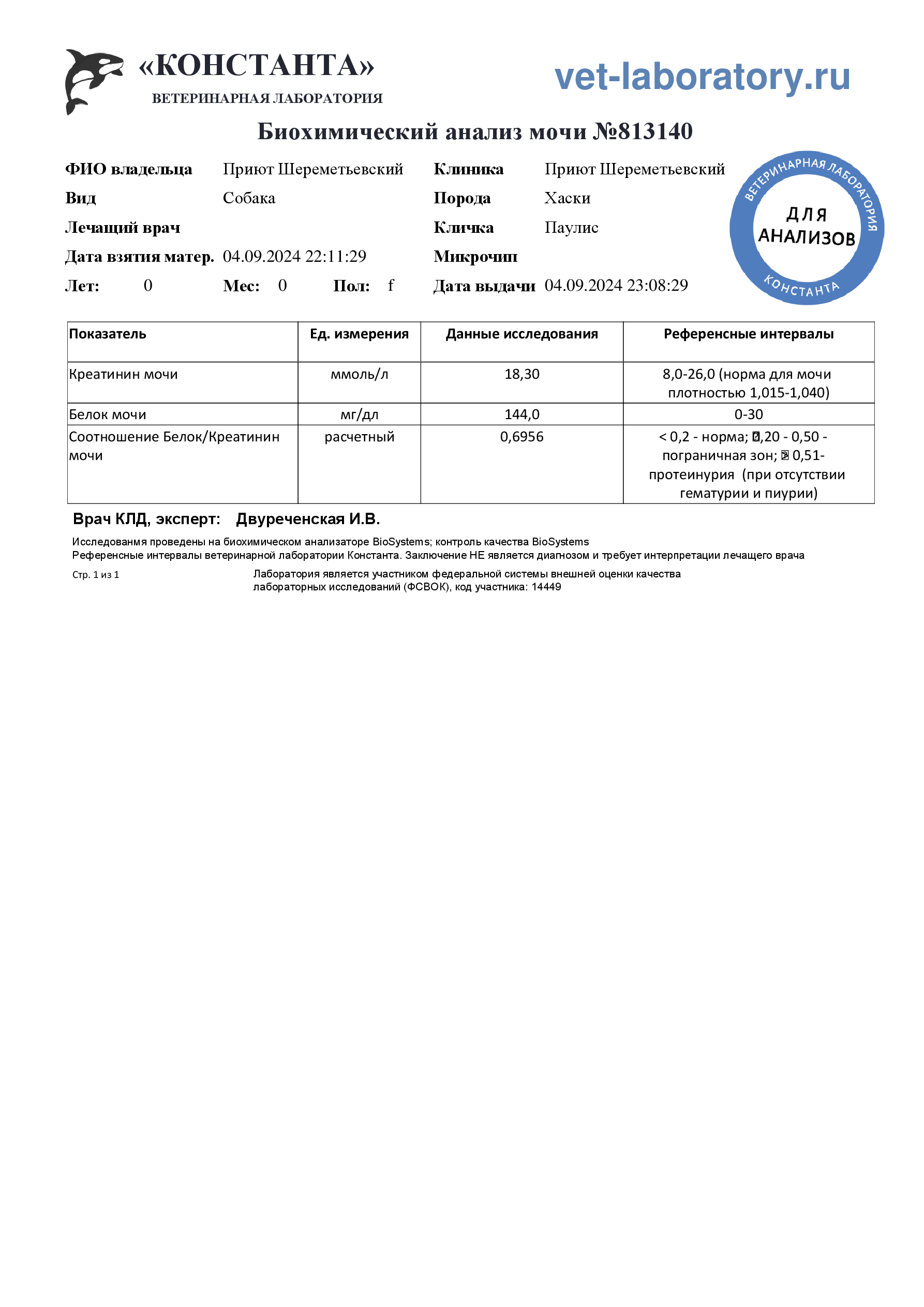 Биохимический анализ мочи (813140)