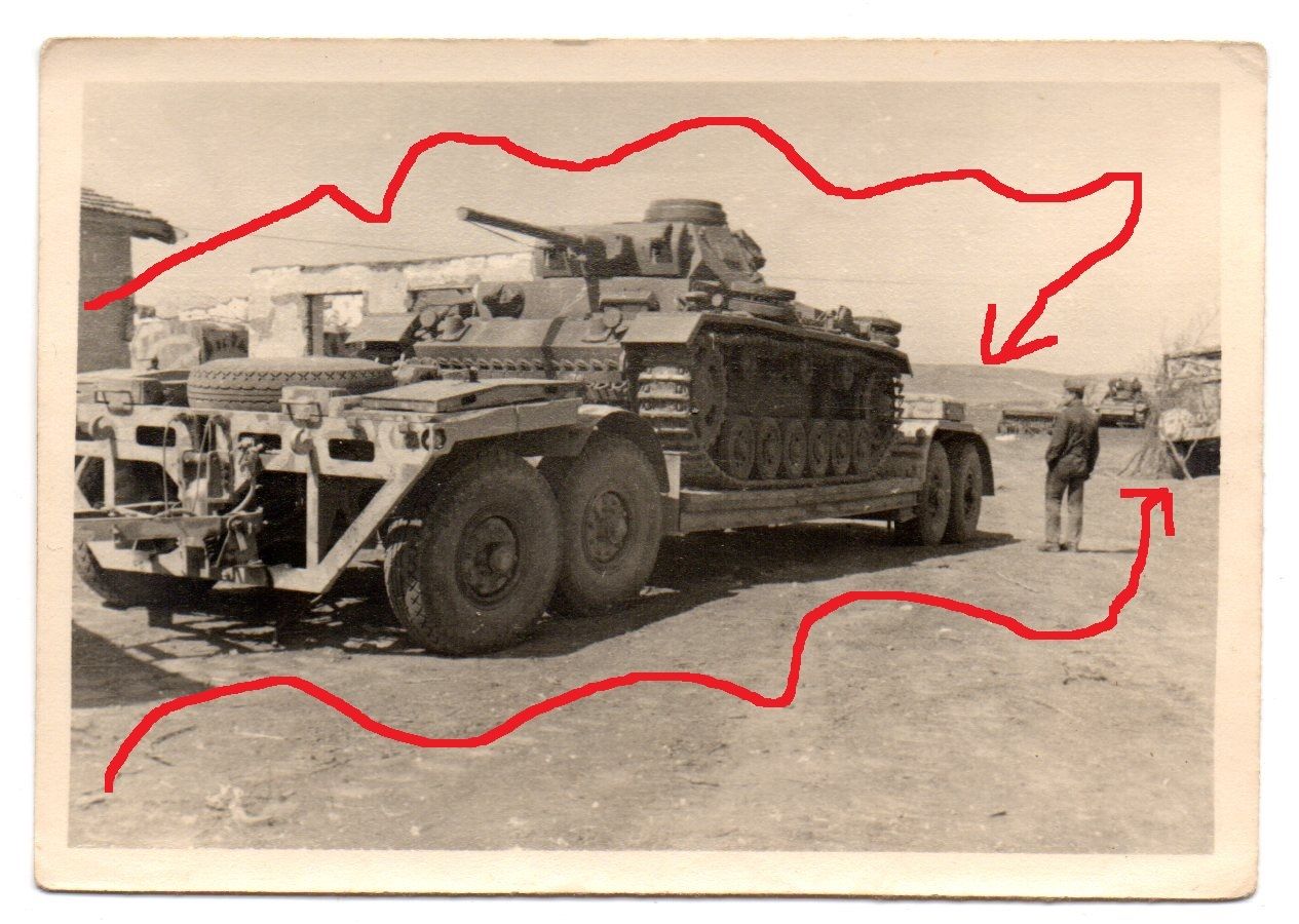 Transport von Panzer III auf einem Anhänger Rußl