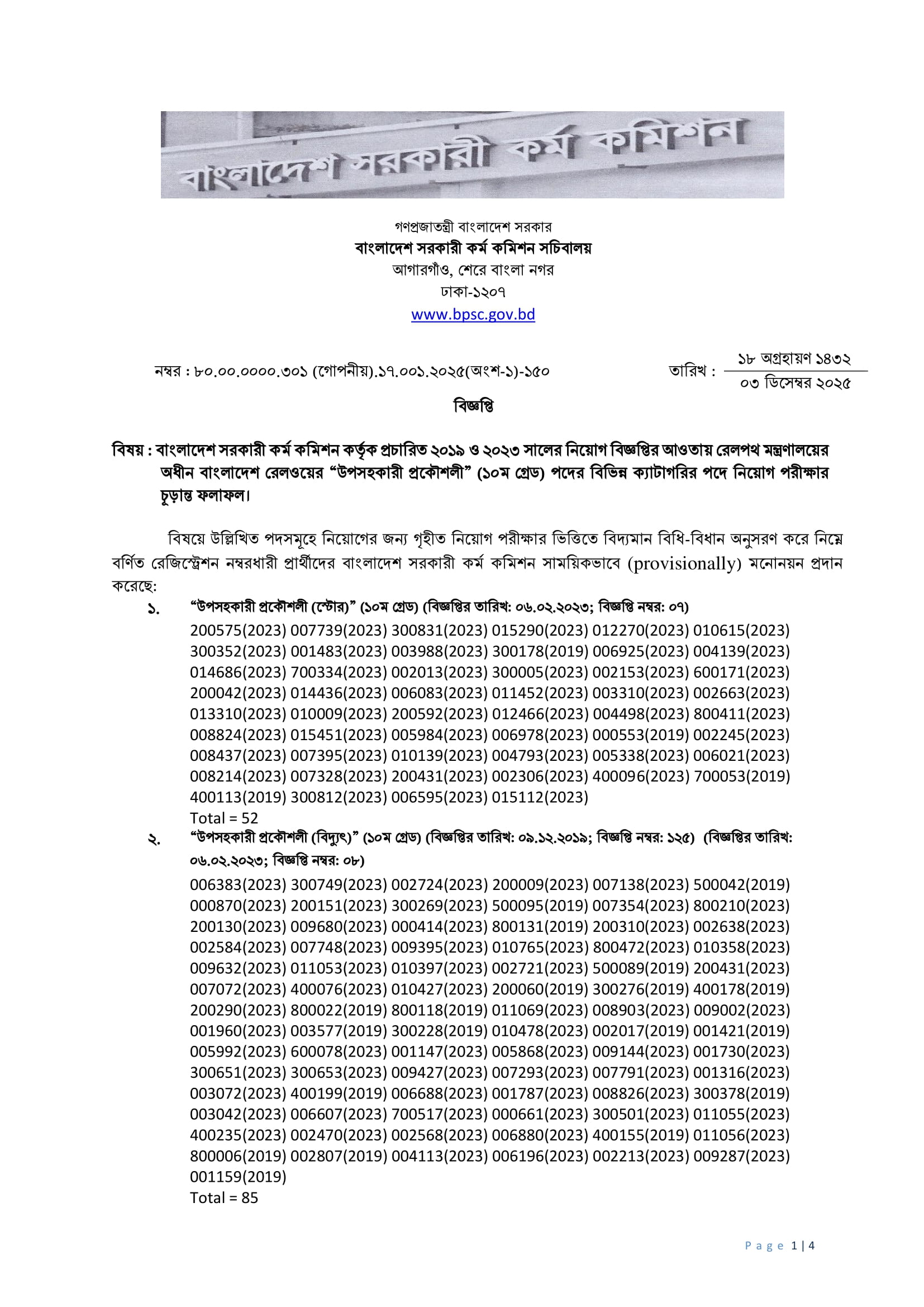 BPSC Non Cadre Railway Sub Assistant Engineer Final Result 2025 PDF 1
