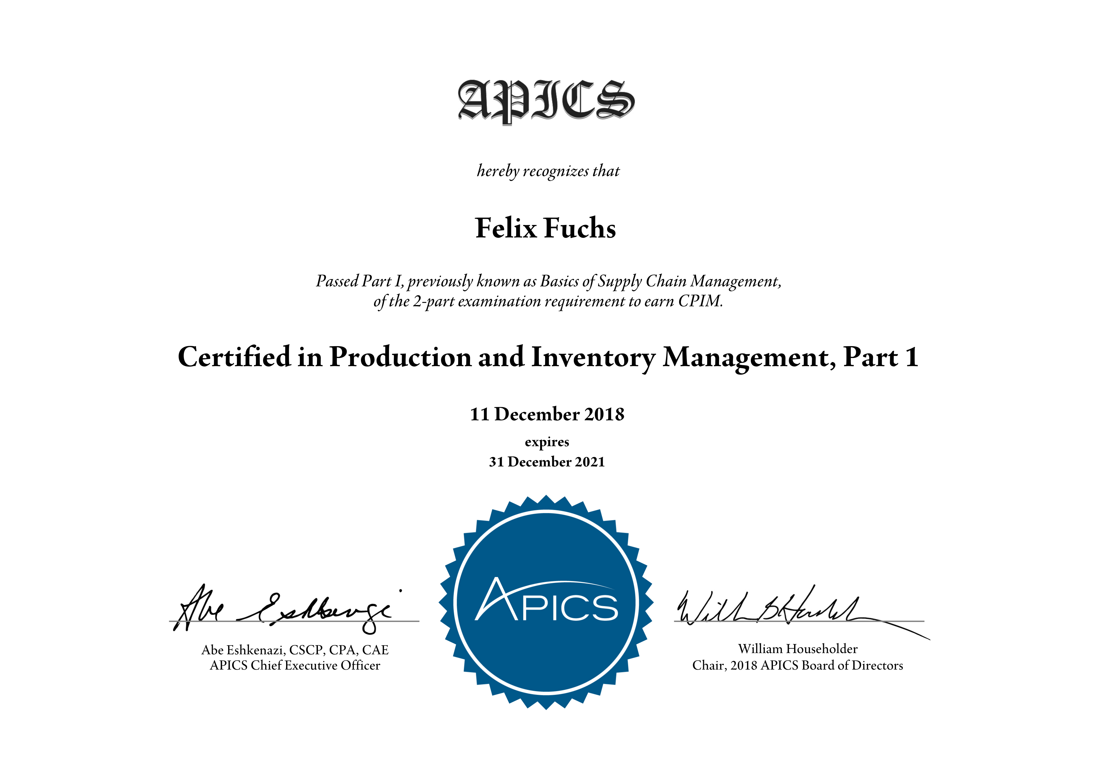APICS Materials Management CPIM FFuchs2018