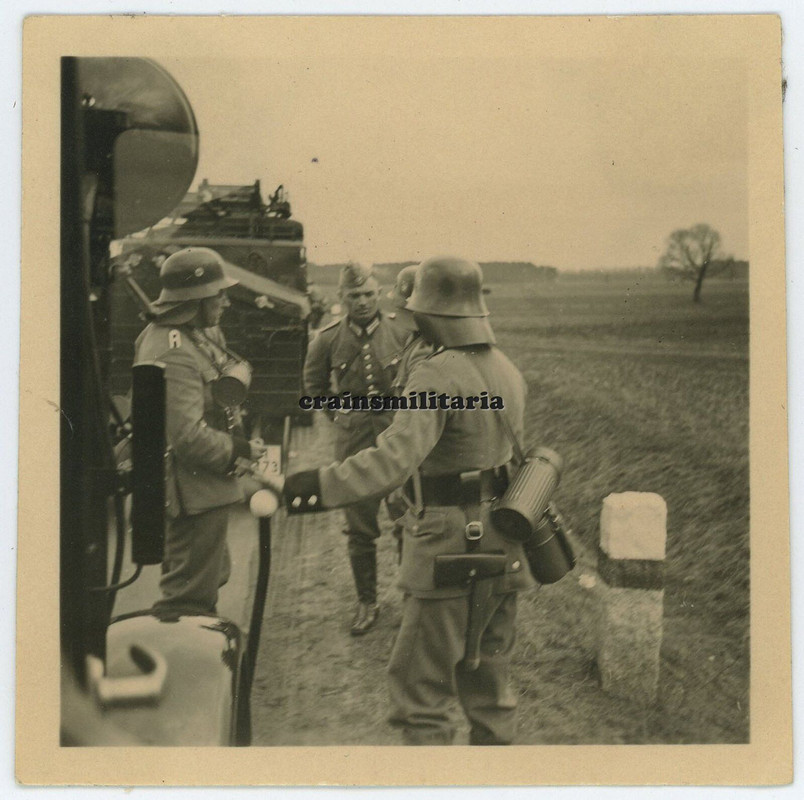 Orig. Foto Feuerschutzpolizei Feuerwehr m. Löschfahrzeug Lkw Helm im Harz 1940