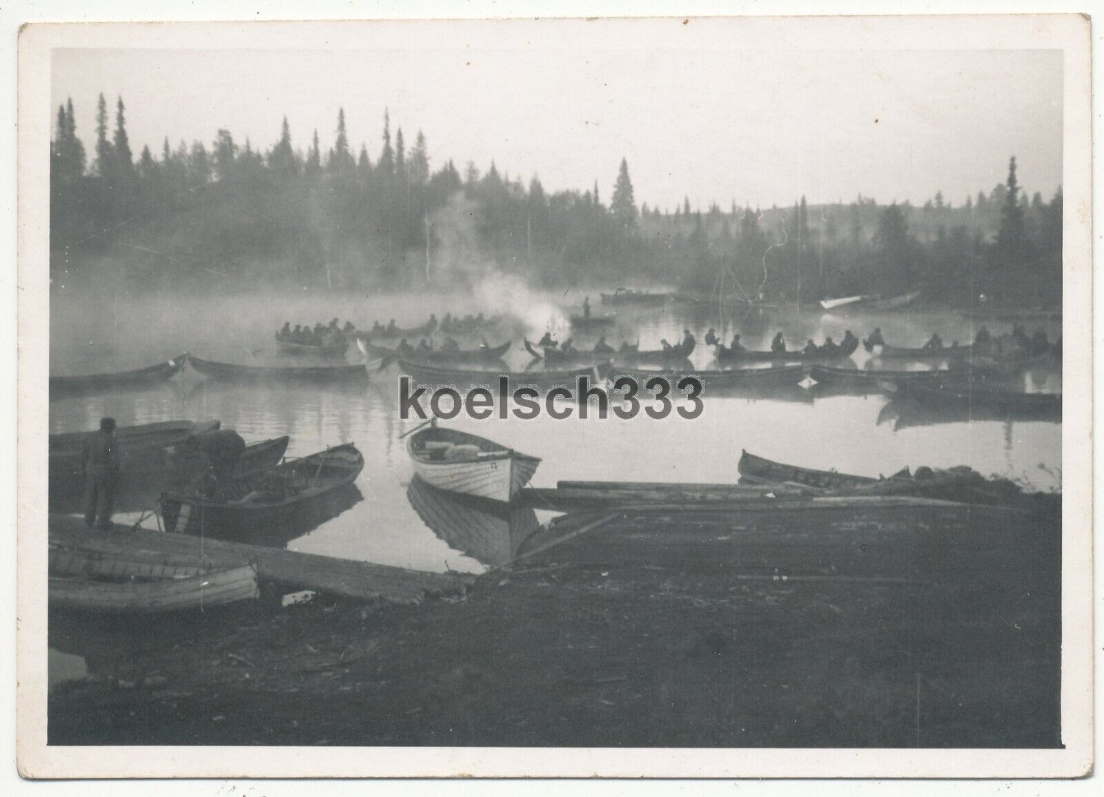 5 Fotos Soldaten in Booten mit PaK Geschütz an der Narwa Front in Estland1