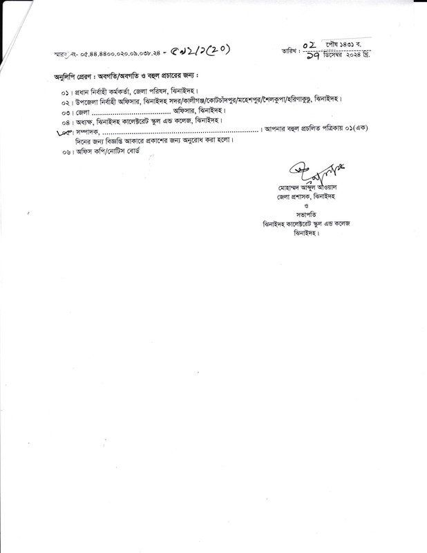 Jhenaidah Collectorate School and College Job Circular 2024 PDF-2