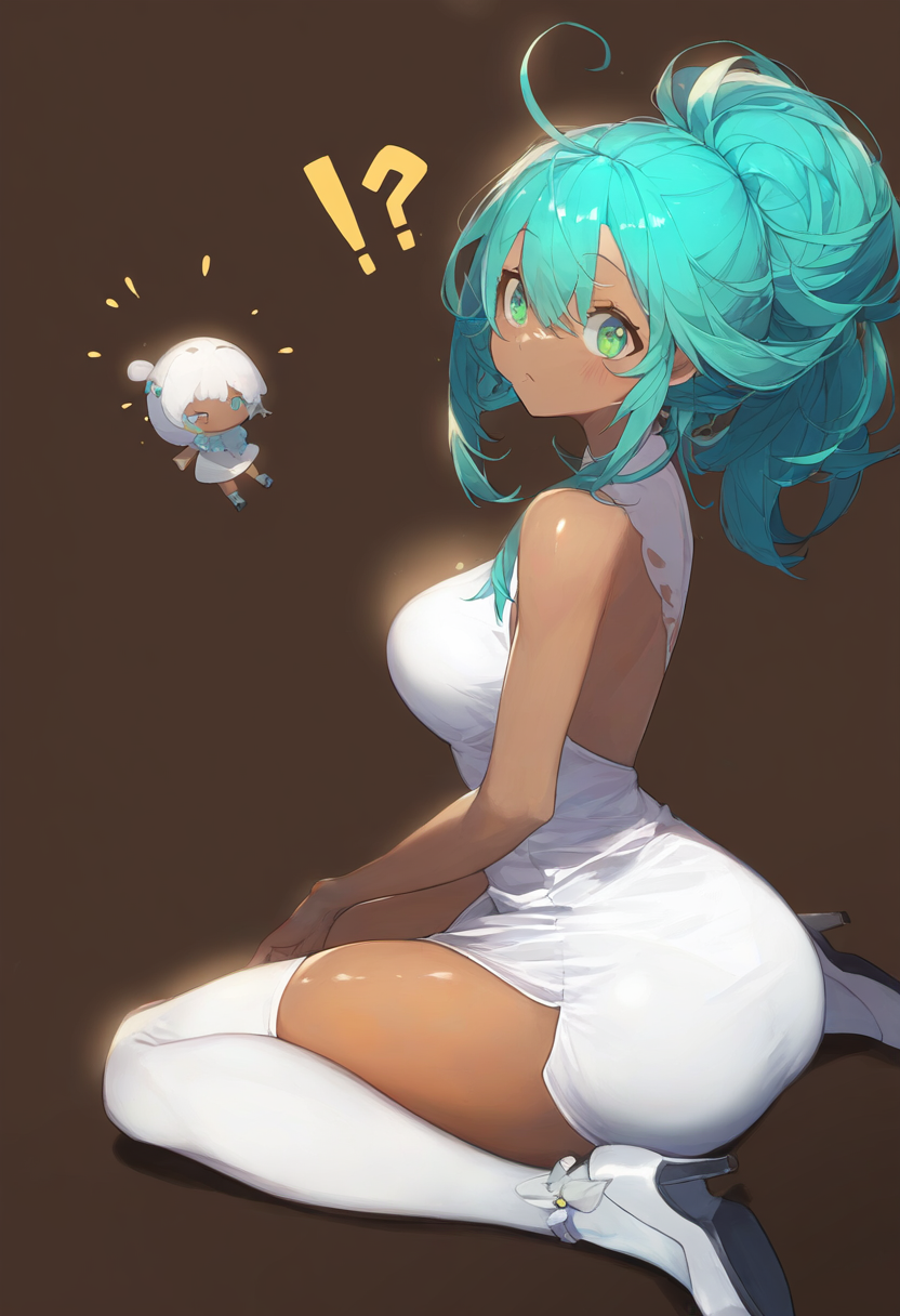 1girl, surreal, brown background, portrait, dark skin, green eyes, aqua hair, wi s-803590913
