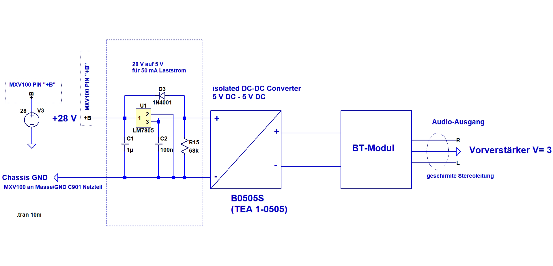 Spannungsanpassung für BT-Modul mit 7805