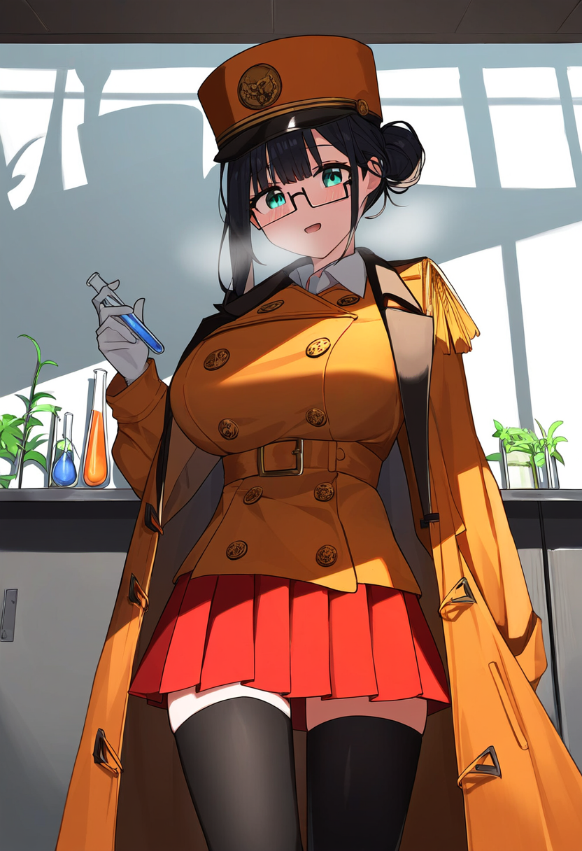 1girl, scenery, shade, straight-on, cowboy shot, big hair, single hair bun, blac s-3907388005