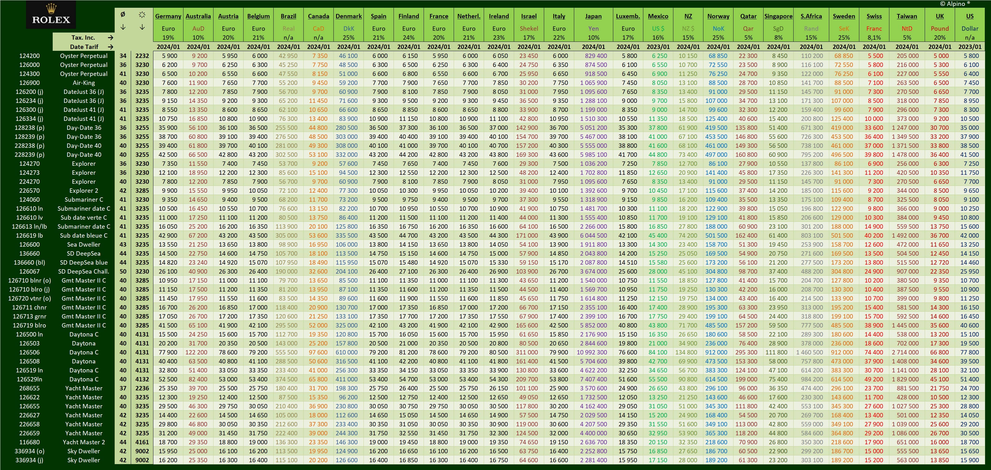 ROLEX PRICES JANUARY 2024