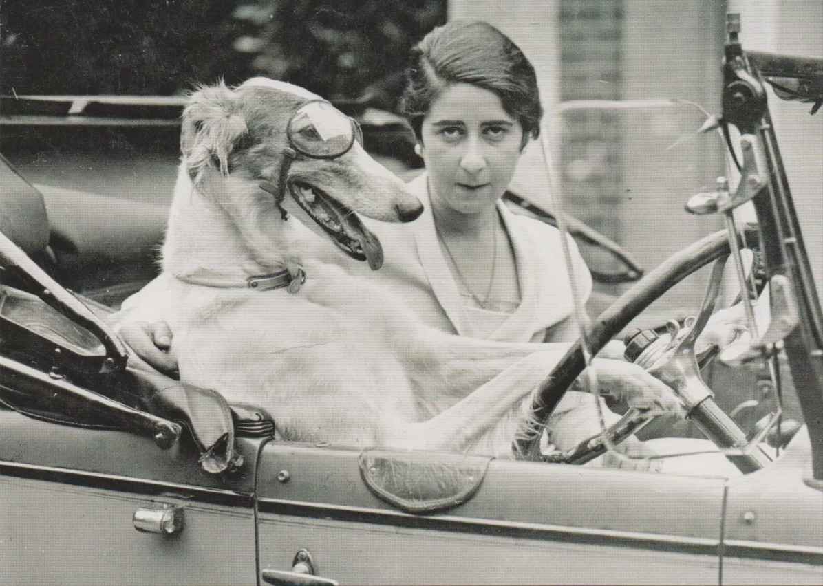 old photo dog on driver's seat