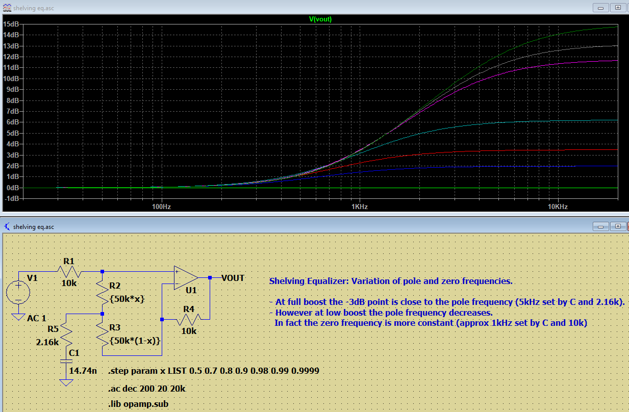 shelving equalizer - pole zero frequency movement