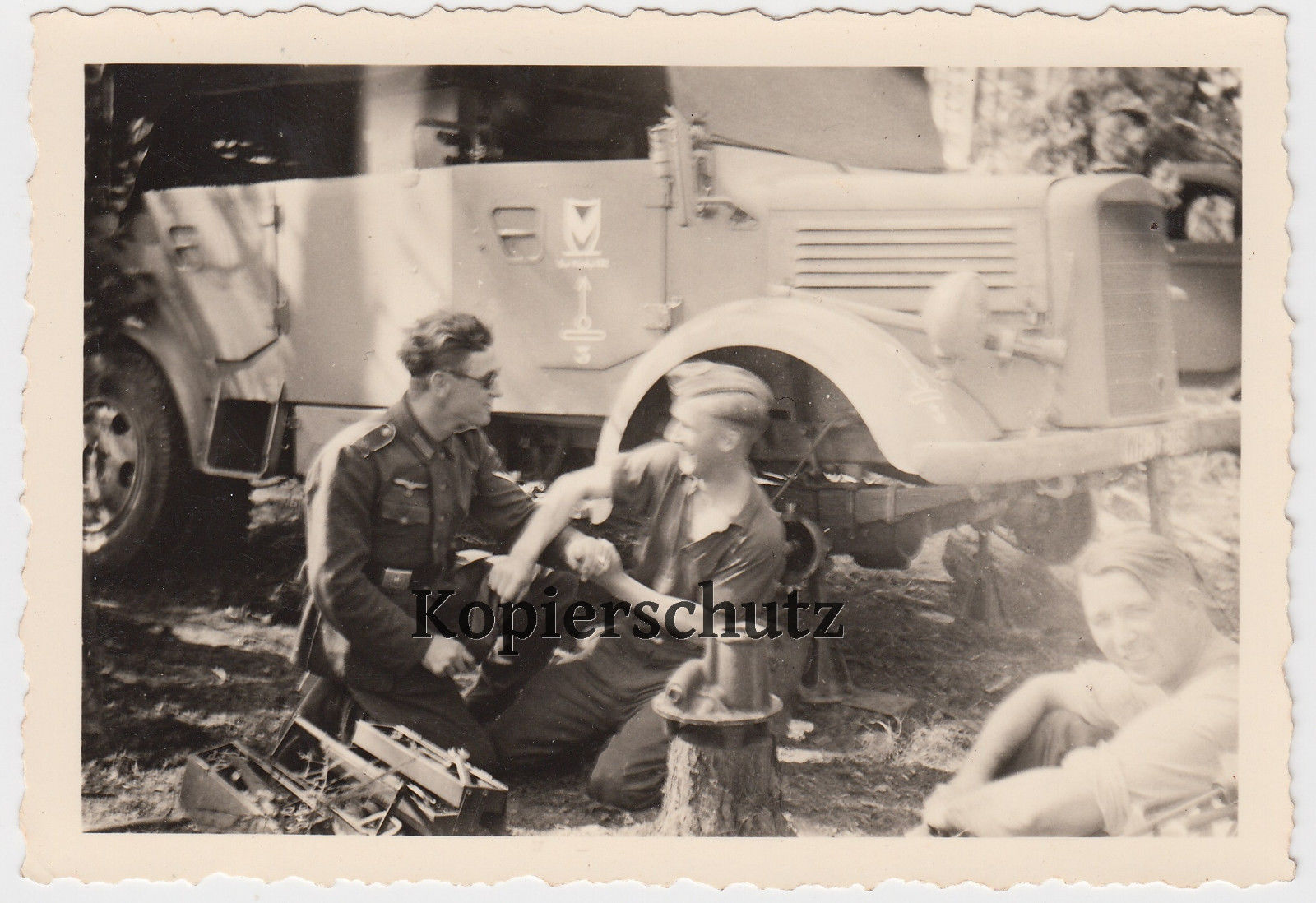 Foto Wehrmacht Soldat Reparatur Reifenwechsel Kübelwagen takt. Z