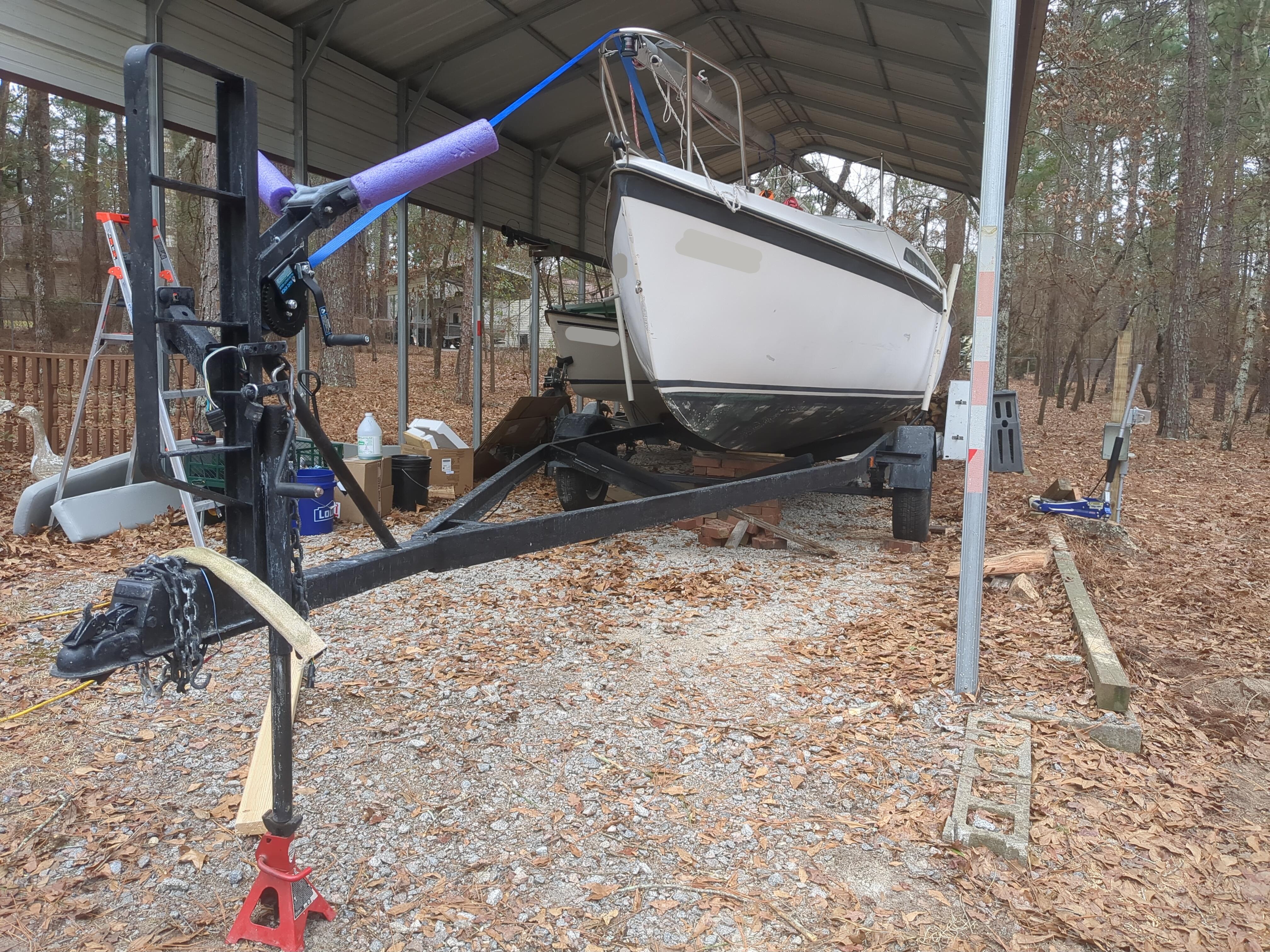 trailer under boat