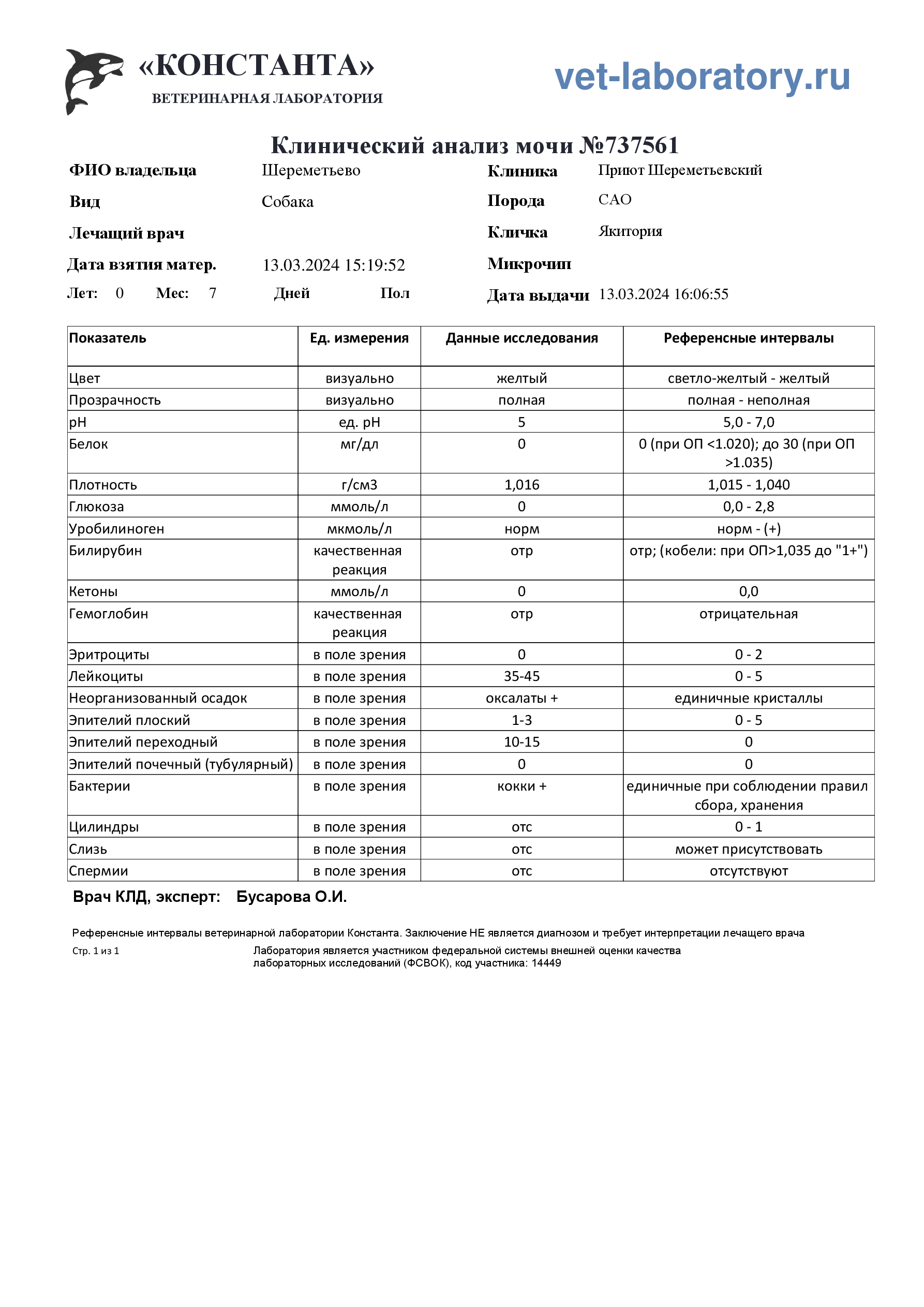 Клинический анализ мочи (737561)