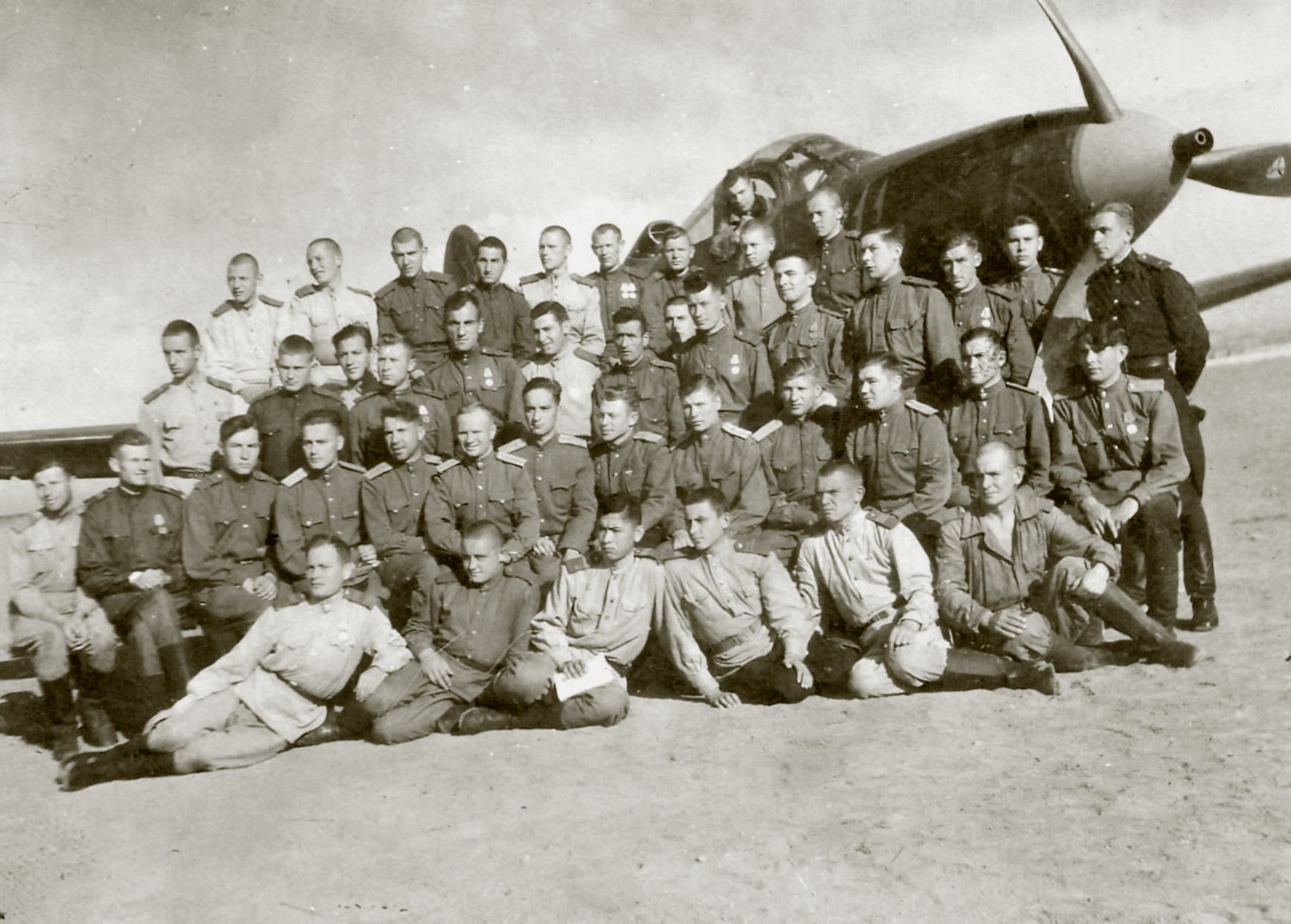 Bell-P-39N-Airacobra-25IAP-Red-11-with-a-pilot-group-photo-Transcaucasian-Front-1945-01