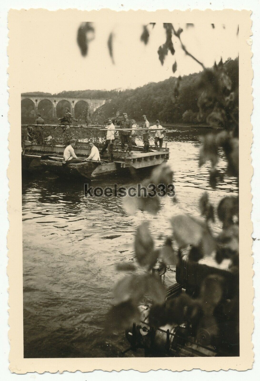 3 Fotos Pioniere der Wehrmacht setzten Artillerie Reg. 29 über einen Fluss über3