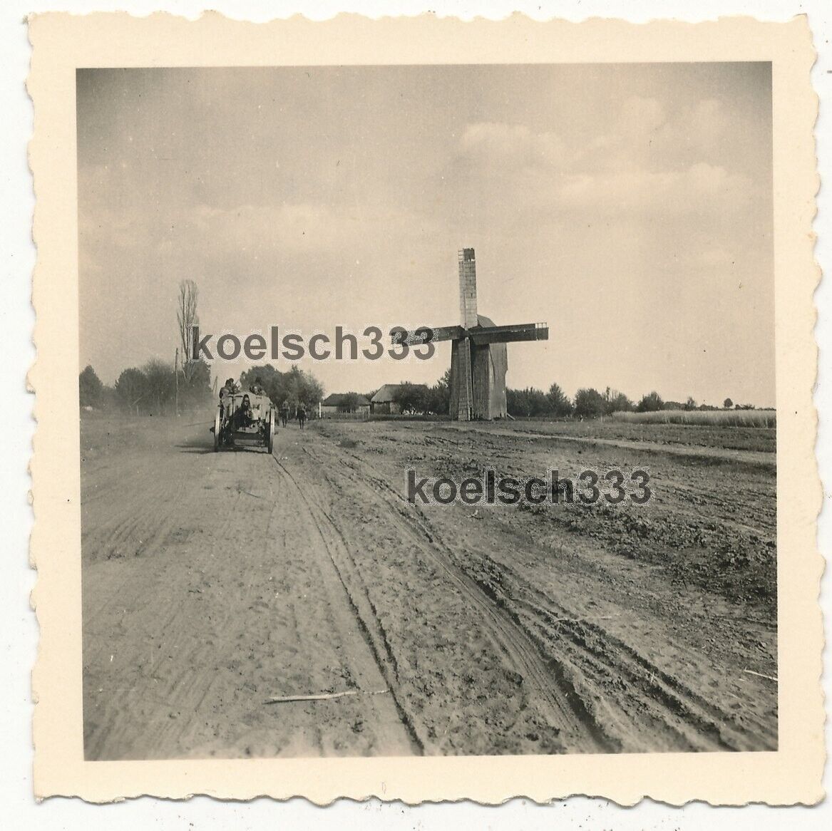 Foto Artillerie Tross der Wehrmacht an einer Windmühle in Berditschew Russland
