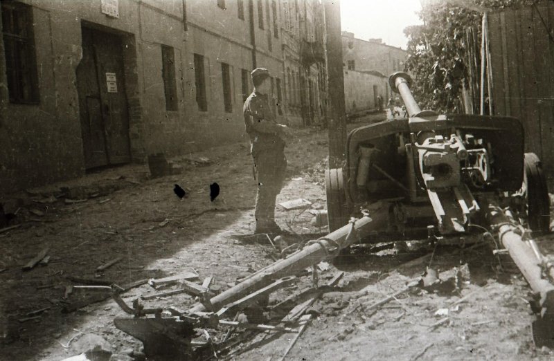 Брошенная немецкая 75-мм пушка pak-40.