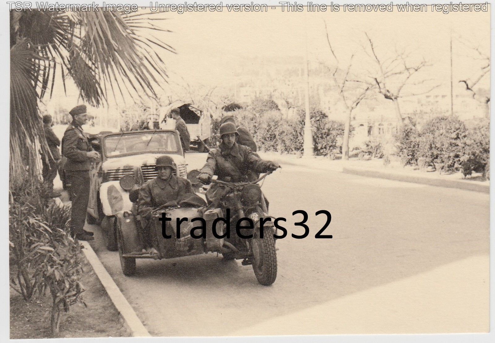 Foto 2 Wk Südfront Wehrmacht Soldaten Krad Motorrad Beiwagen Pkw Auto camo