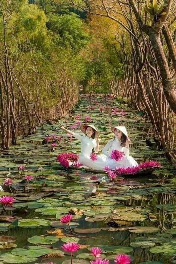 Girls and flowers in water