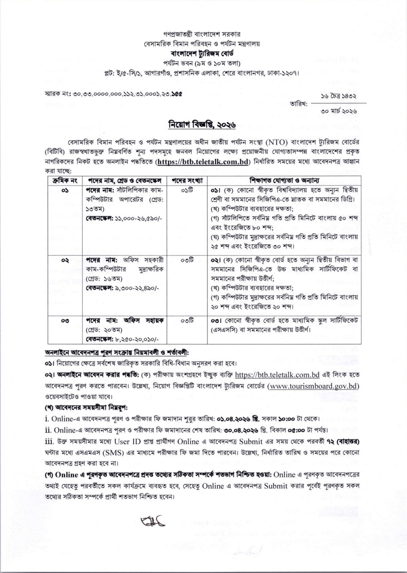 BTB Job Circular 2026 PDF 1