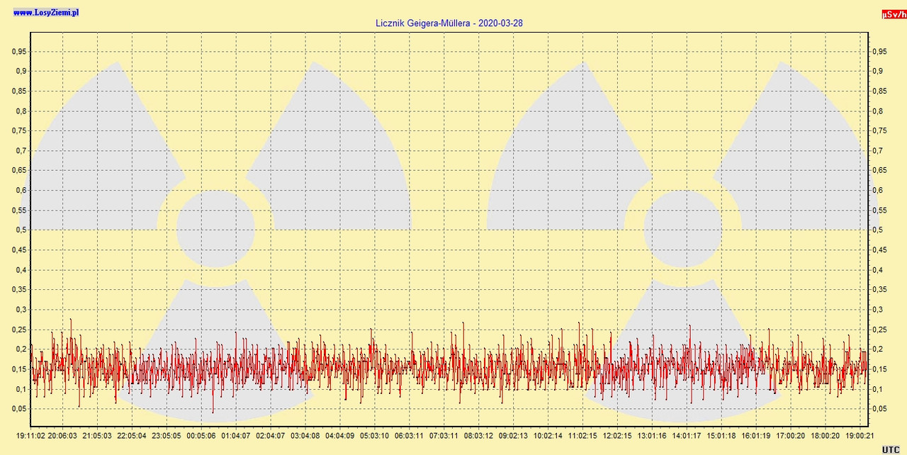 Licznik Geigera, stały pomiar 2020.03.28, 24h