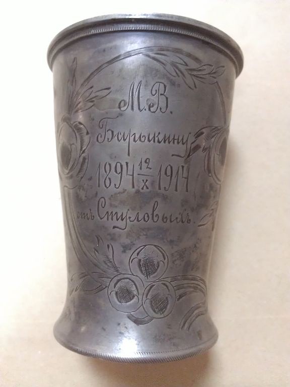 серебряная стопка,подарок Уральского купца Стулова