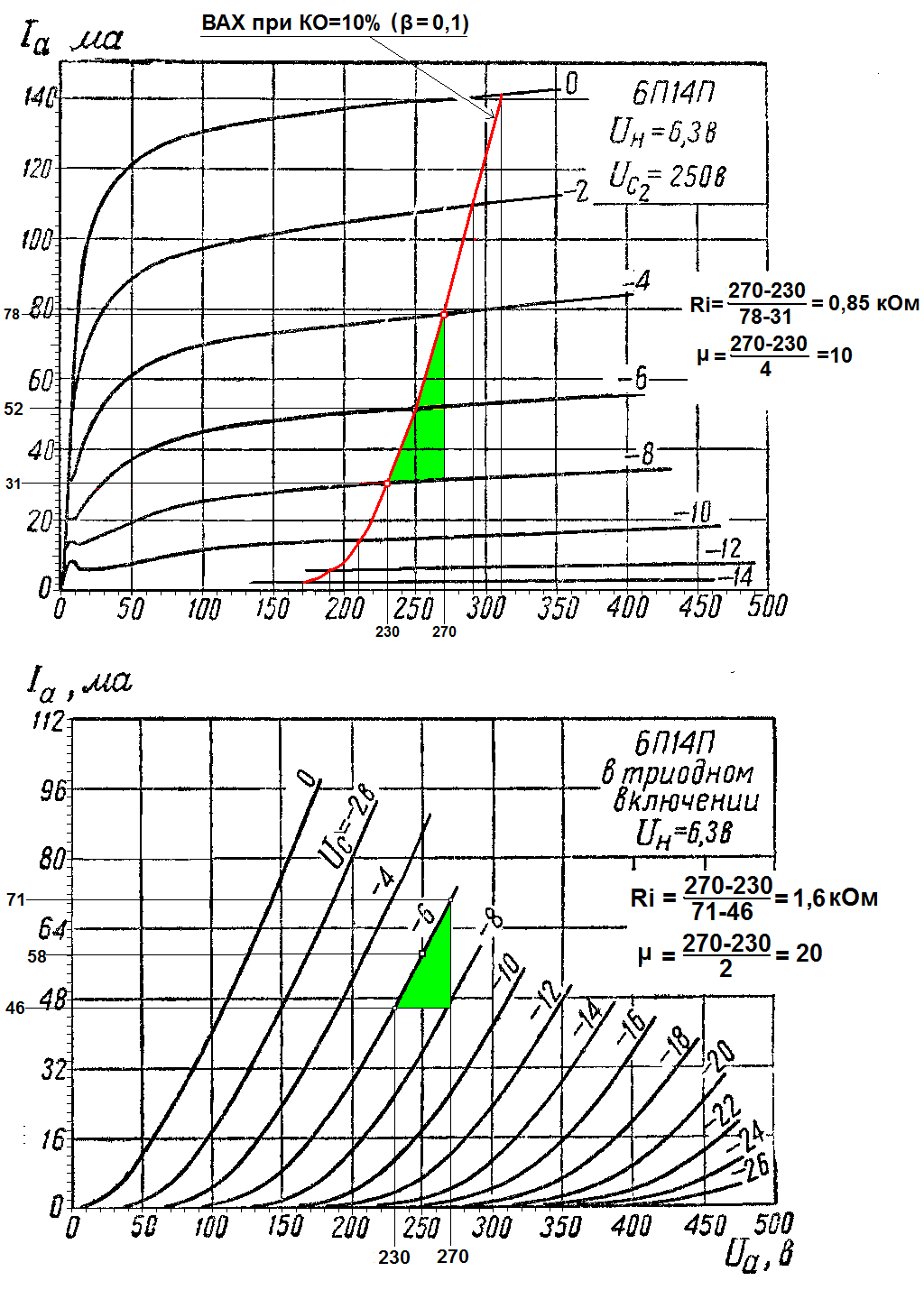 6П14П - Ri в триоде, в пент. с β=0,1