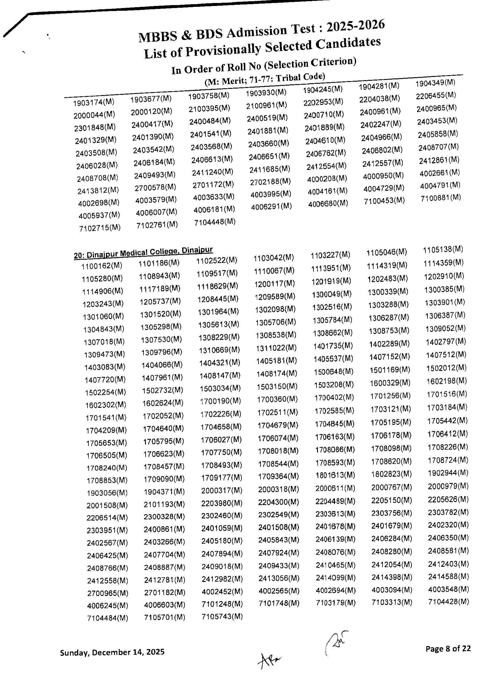 Medical MBBS Admission Test Result 2025 2026 Session PDF 10