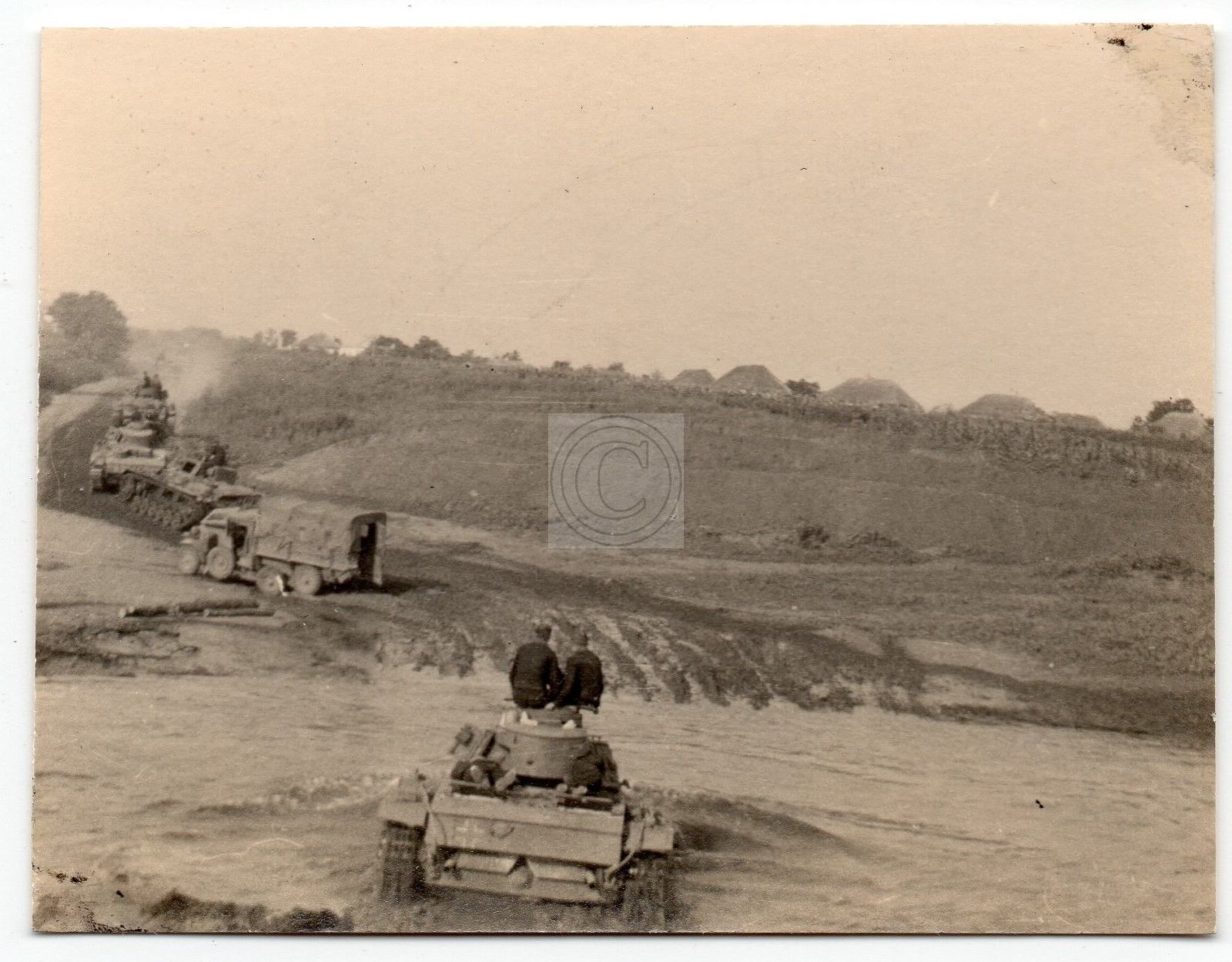 Vormarsch Panzer Tank Soldaten LKW Fluß