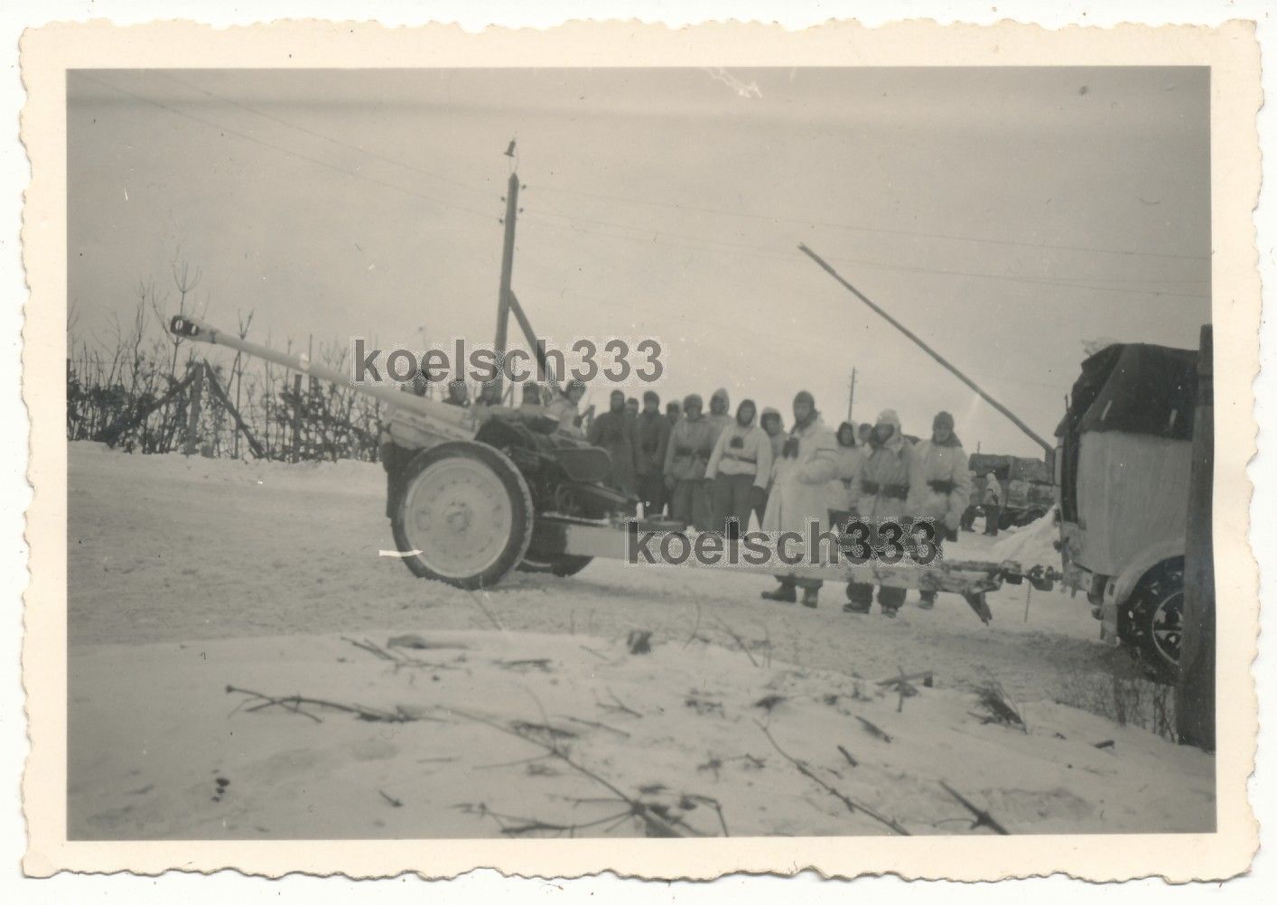 Foto Panzer Halbkette russische 7,62cm PaK 36(r) Beute Schneetarnun