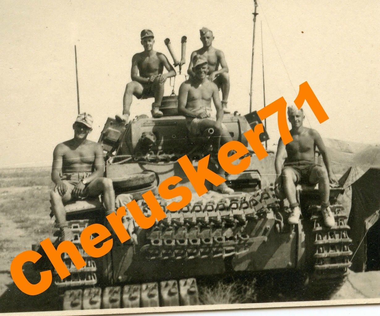 Foto Panzer Afrikakorps Besatzung Soldat halb nackt Wüste Tank O
