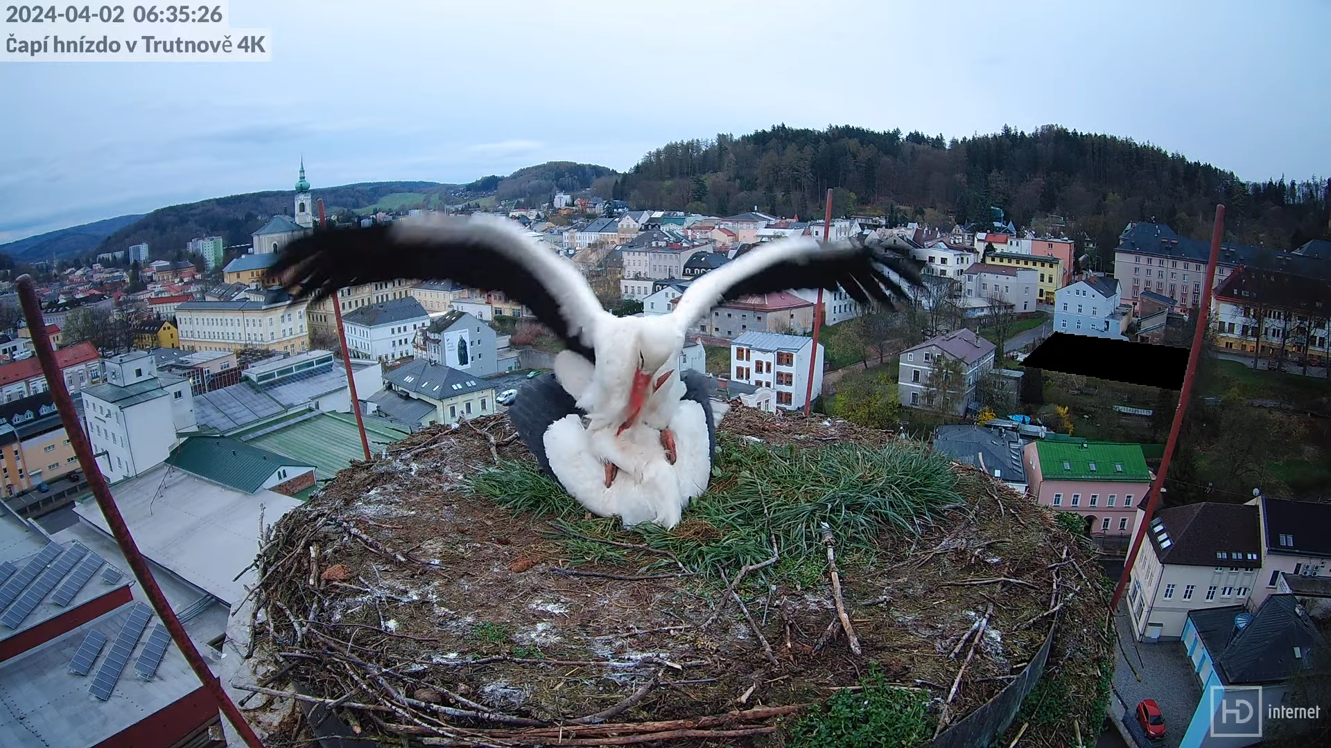 Tiešraidē no stārķa ligzdas uz alus darītavas skursteņa Trutnovā 5-22-40 screenshot