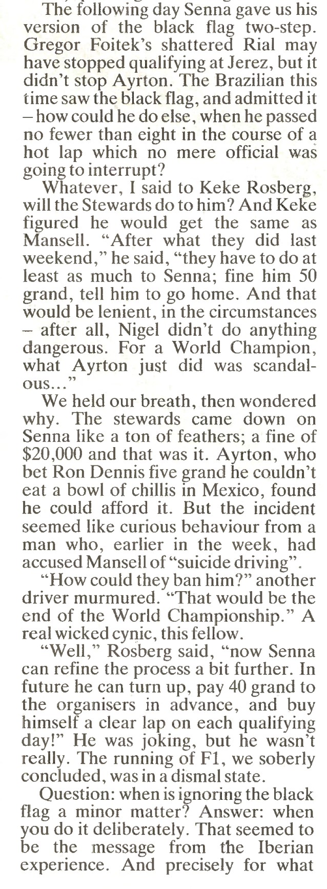 Senna Spain 1989 Ignoring Black Red Flags (Autosport 12th October 1989) (1)