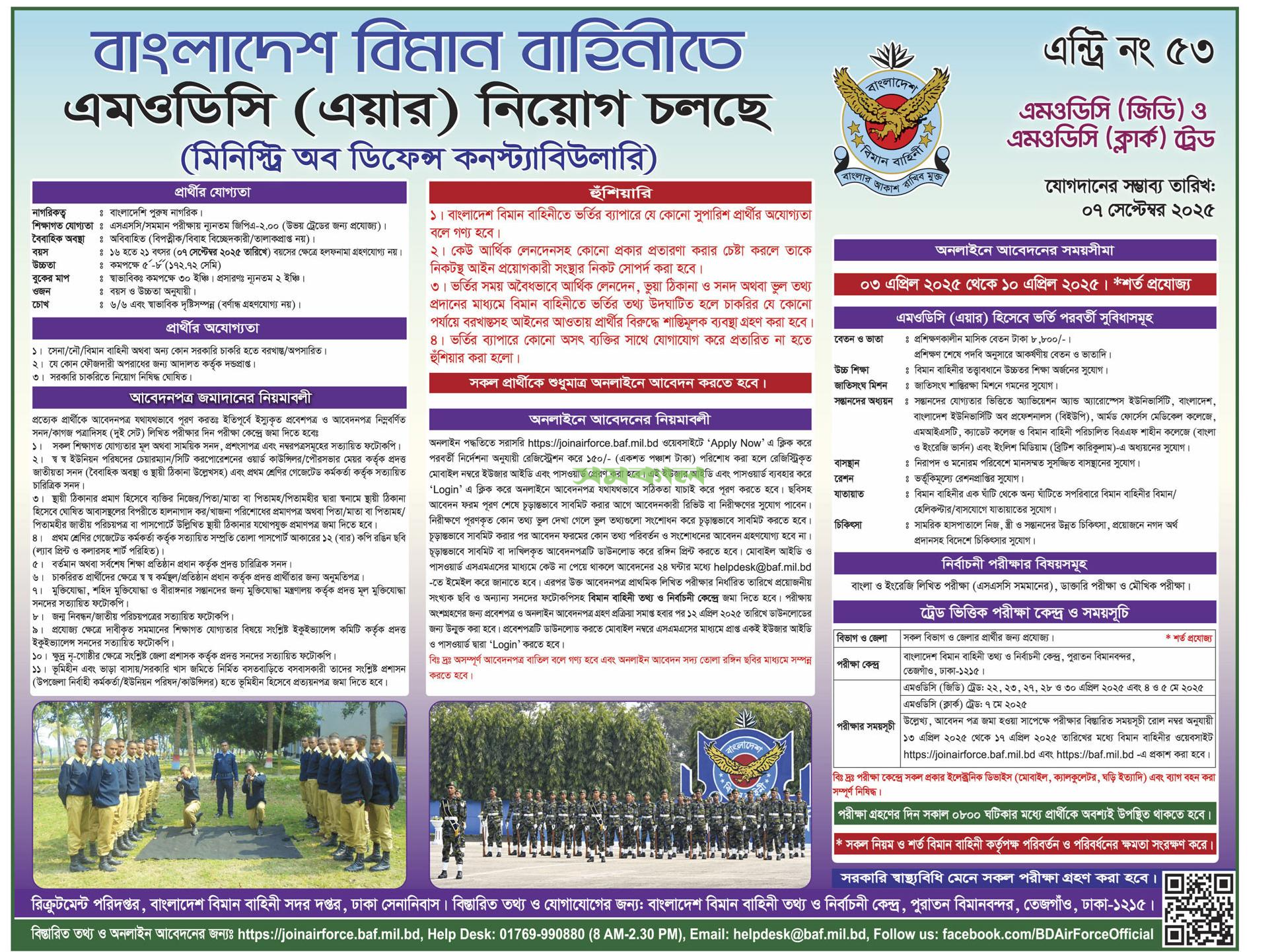 BAF MODC (Air) Job Circular 2025