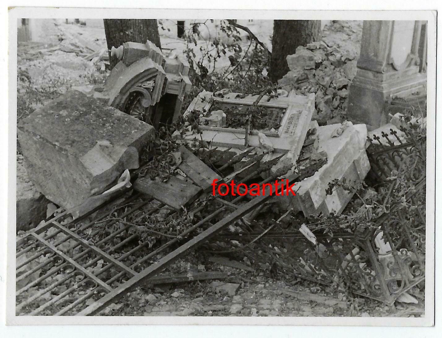 Foto 2 WK Frankreich Ort Vincelles zerstörter Friedhof und Grabsteine nach KAMPF