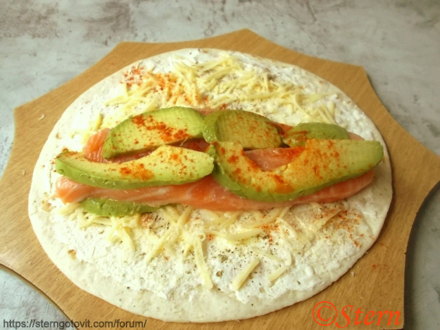 Лосось с авокадо и сыром в тортилье