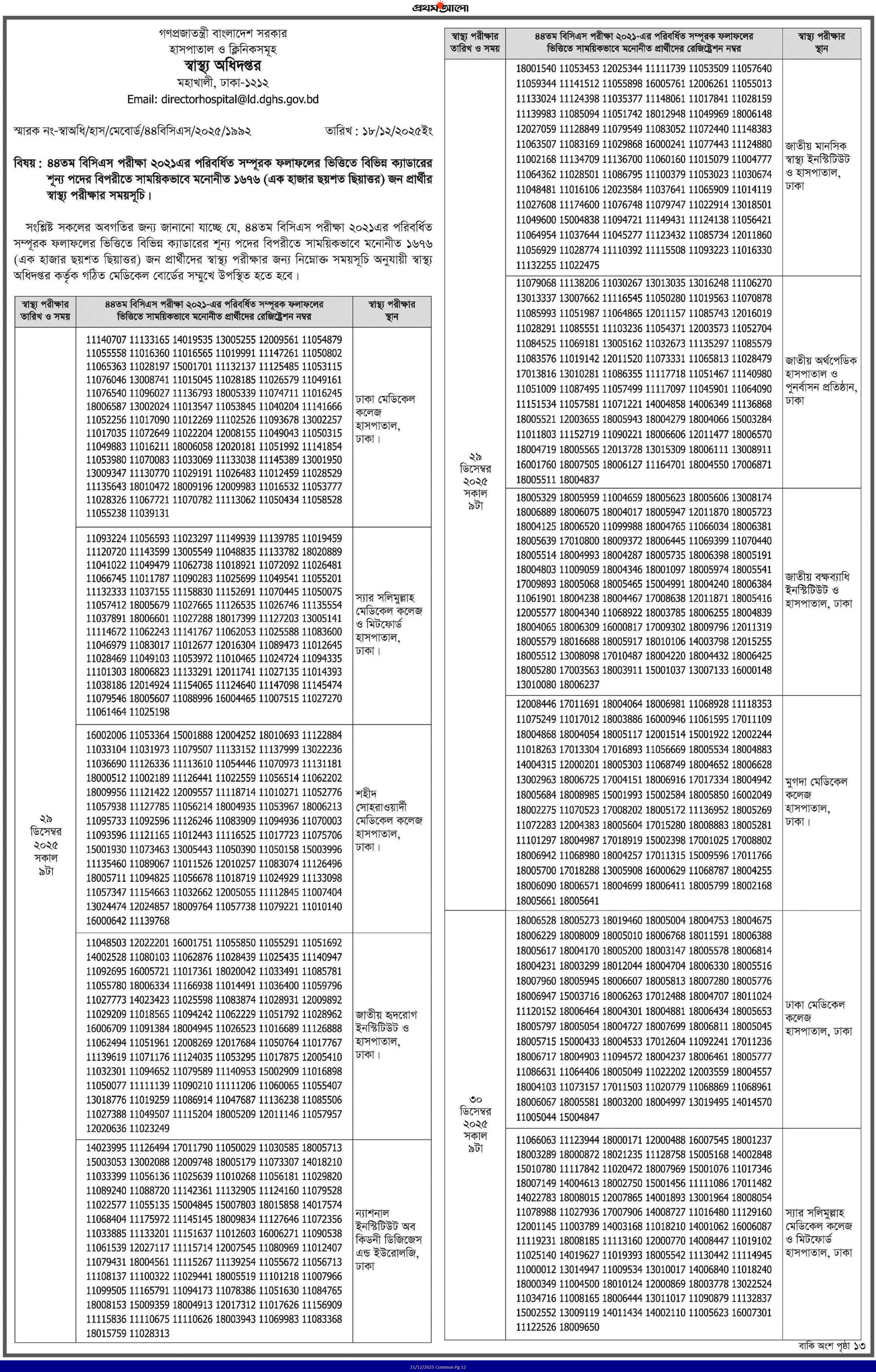 44th BCS Medical Test Date 1