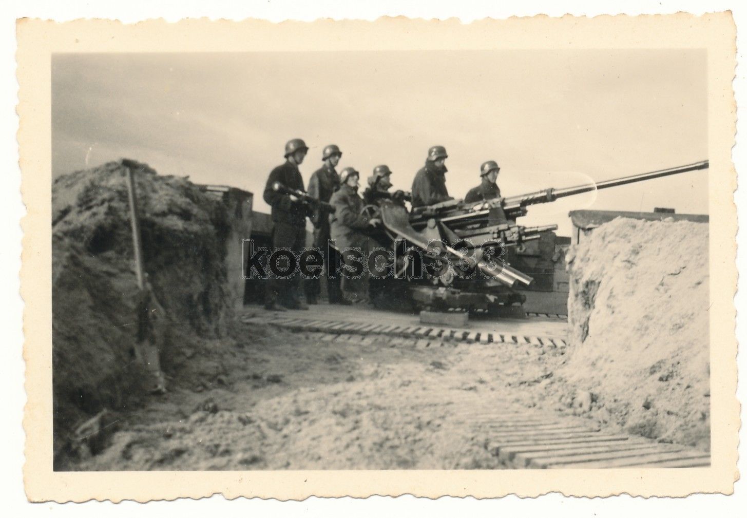 Foto Frankreich Atlantikwall Geschütz Bunker 3,7cm Flak Kanoniere Stahlhelm