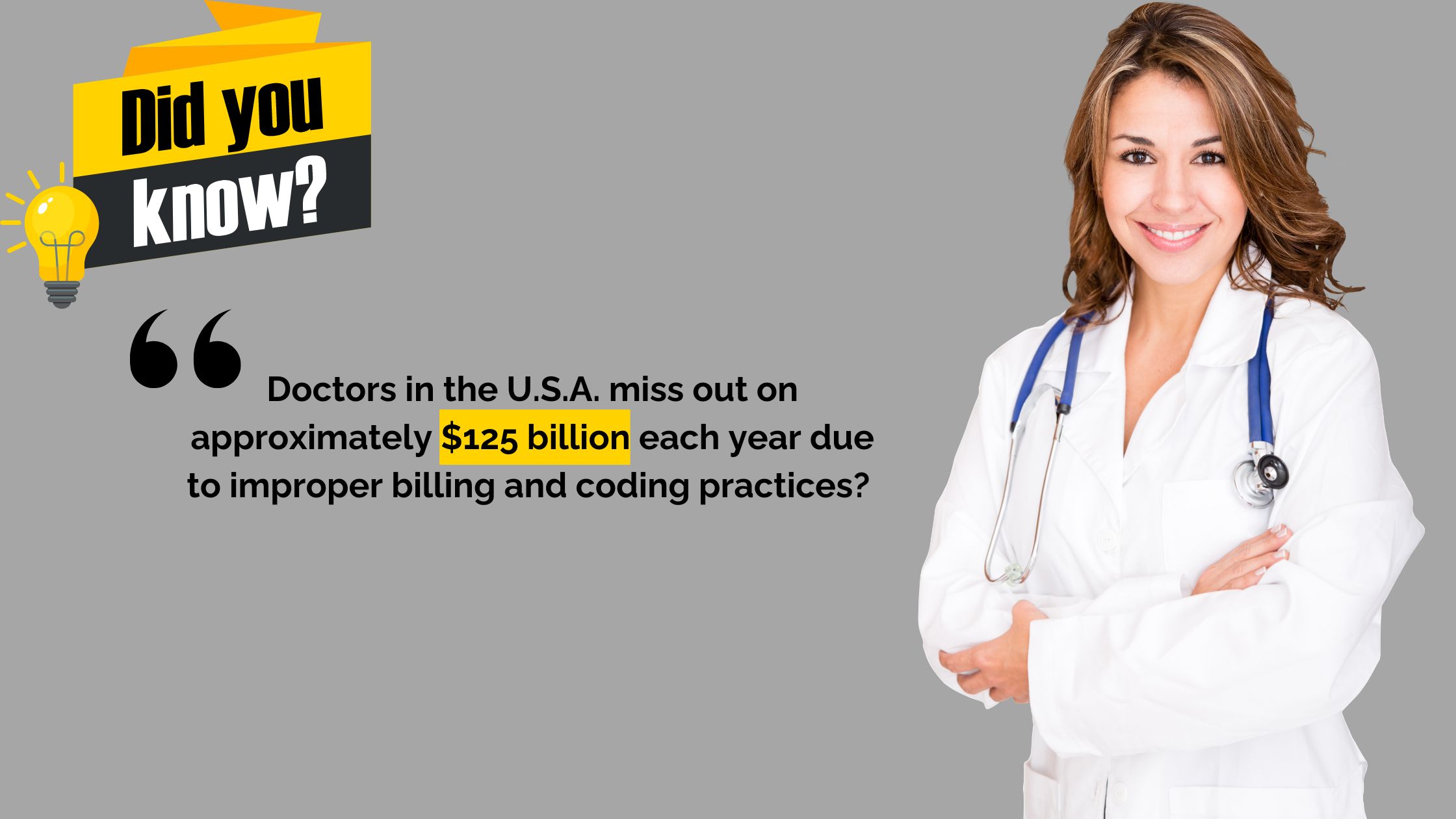 Doctors in the U.S.A. miss out on approximately $125 billion each year due to improper billing and c