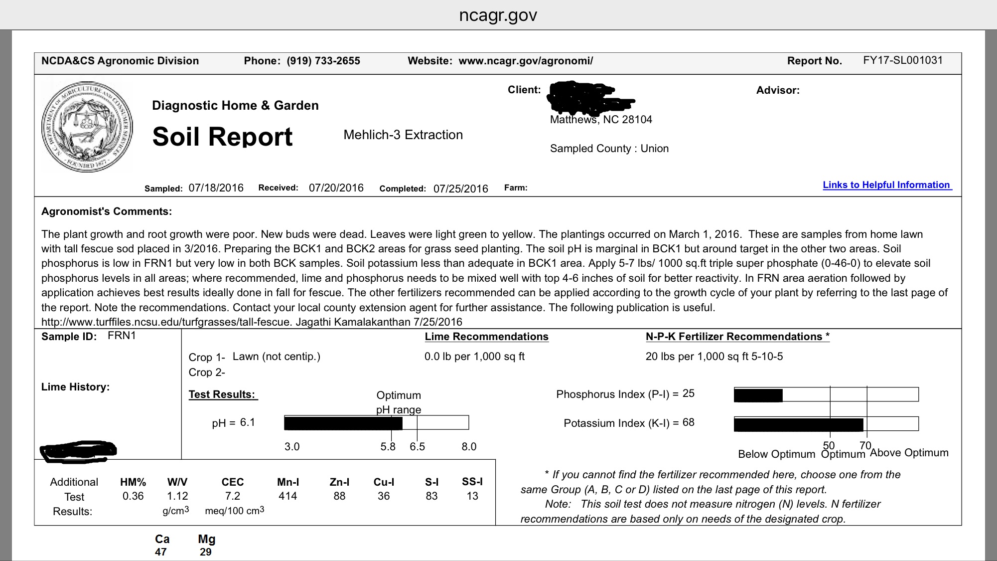 Frontyard soil sample