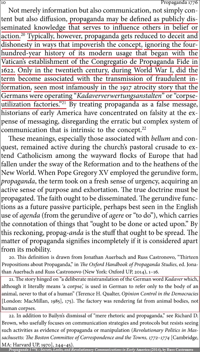 WW1 - Propaganda 1776 - 2014 - Corpse-Factory Story - the term 'propaganda' became associated with t