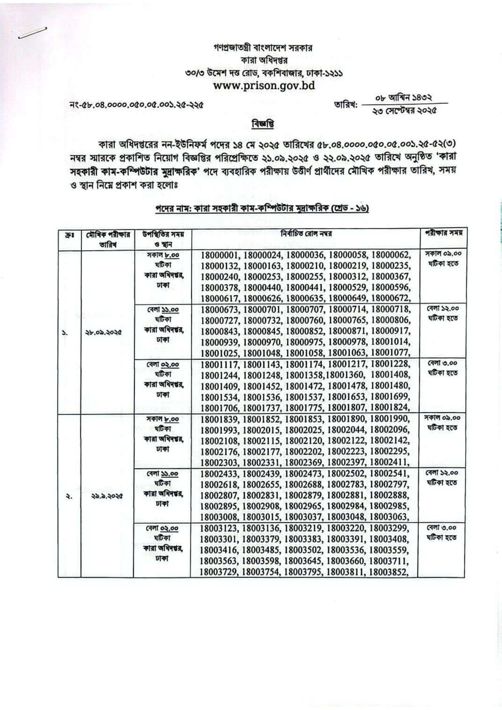 Department of Prisons Jail Assistant Cum Computer Typist Viva Date 2025 PDF-1