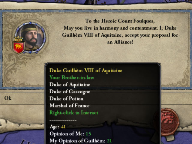 Duke Guilhem accepts alliance