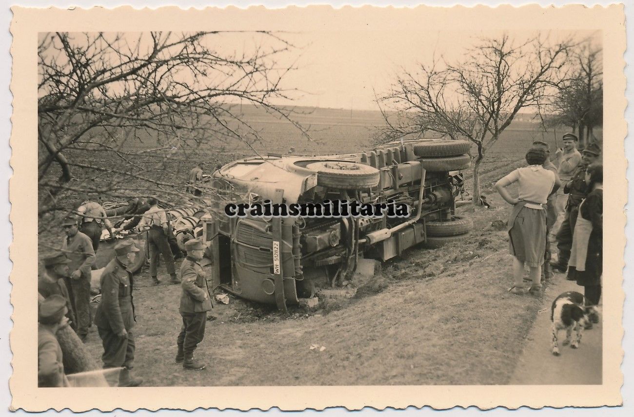 Orig. Foto Unfall französische Beute Lkw Renault